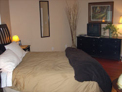 You may not want to leave the master suite. A high pillow-top king sized mahogany bed makes for the most luxurious sleep and a flat screen television for the times you may prefer to watch from the comfort of your bed. An electric fireplace can be turned on by the flick of a switch. The master suite includes a desk with computer and large monitor with wireless high speed internet. To the side of your bed is a sliding glass door that opens to the large balcony overlooking the property and the lake, with a great view and a swinging bench seat outside your door for you to enjoy. An easy accessible large closet and bathroom complete the master suite. The nearby hot tub is only a few steps away overlooking the lake.